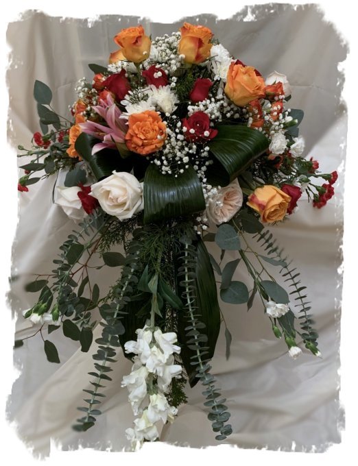 Half casket spray arrangement, depending on type of flowers, is starting at $285. Size ranges from 24″ to 40″ wide and 24″ to 28″ deep. Full casket spray arrangement, depending on type of flowers, is starting at $450. Size ranges from 60″ to 72″ wide and 26″ to 36″ deep.