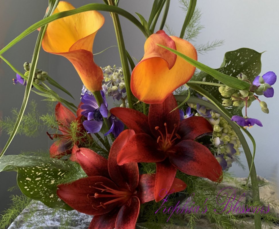 In some instances, this arrangement may represent an overall theme or look, and include one-of-a-kind vase which cannot be exactly replicated. Although the actual bouquet may not precisely match the photo, it's temperament will. Occasionally, due to weather, seasonality and market conditions which may affect availability, substitution of flowers and/or containers may occur. If this is the case with the flower arrangement you've selected, we will ensure that the style, theme and color scheme of your arrangement is preserved, and will only substitute selected items with one of equal or higher value.